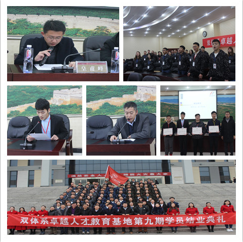最后,双体系主任皇甫峰老师寄语第九期学员,希望九期学员信守“今天我以双体为荣,明天双体以我为荣”诺言,以往期学员为榜样,目标要高,眼界要宽,放心大胆去闯,走向北上广、迈入知名企业。同时希望同学们在今后工作生活中,树立正确的工作生活观,要不断加强学习,不断锤炼人品。