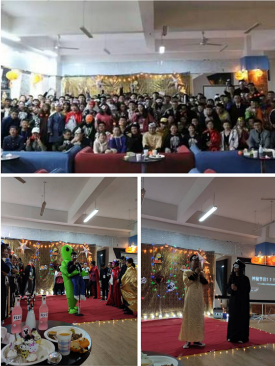 11月13日晚,在C区活动室,一场主题为“晋渝浓情,把酒言欢”的欢迎酒会在热烈的氛围中举行。整场酒会中,我们穿着重庆双体同事们精心准备的奇异服饰,带着神秘的各色面具。在场的每位同事都是一样,既熟悉又陌生的感觉让大家都感受了一把假面舞会的魅力。每个部门都精心准备了的精彩的节目。而我们山西的伙伴也带来一段相声和歌曲向热情的重庆表达着我们的祝福。