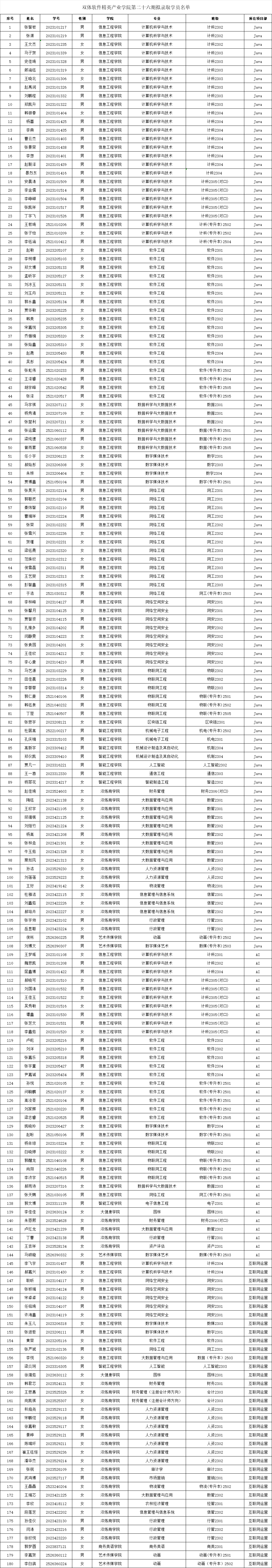 双体软件精英产业学院第二十六期拟录取学员名单: